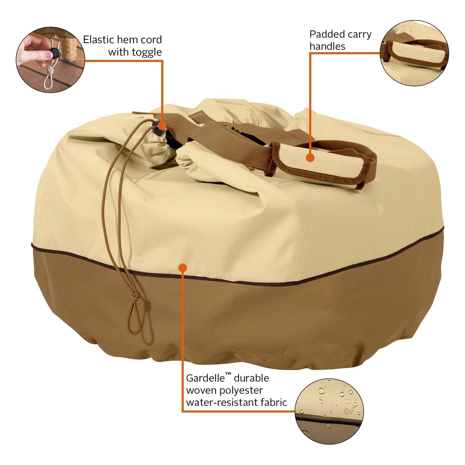 Veranda™ Pebble Portable Round Table Top Grill Cover & Carry Bag (22″Dia x 18″H) by Classic Accessories®. This top-grade product is expertly made in compliance with stringent industry standards to offer a fusion of a well-balanced design and high level of craftsmanship. Manufactured from industry-leading materials using up-to-date equipment, it ensures everlasting reliability and enduring value. This product is distinguished by total quality assurance, unsurpassed by anybody else