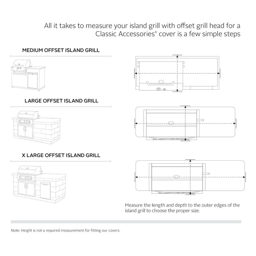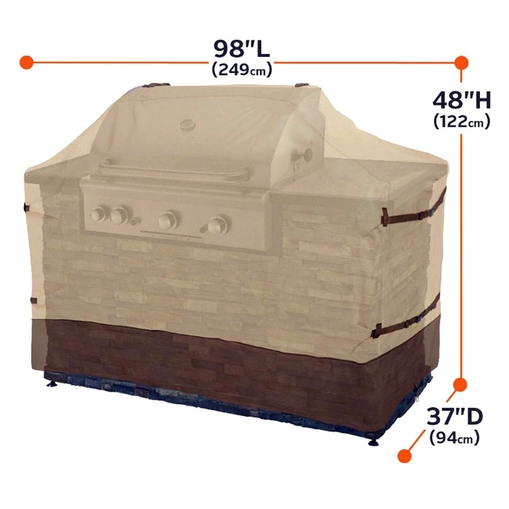 Veranda™ Pebble X-Large Island Grill Top Cover for Side Grill Head (98″L x 37″W x 48″H) by Classic Accessories®. A customer favorite for its fashionable design, durability and extensive collection of matching products, the Veranda line features our heavyweight Gardelle™ woven polyester fabric and special water-repellent and resistant undercoating.