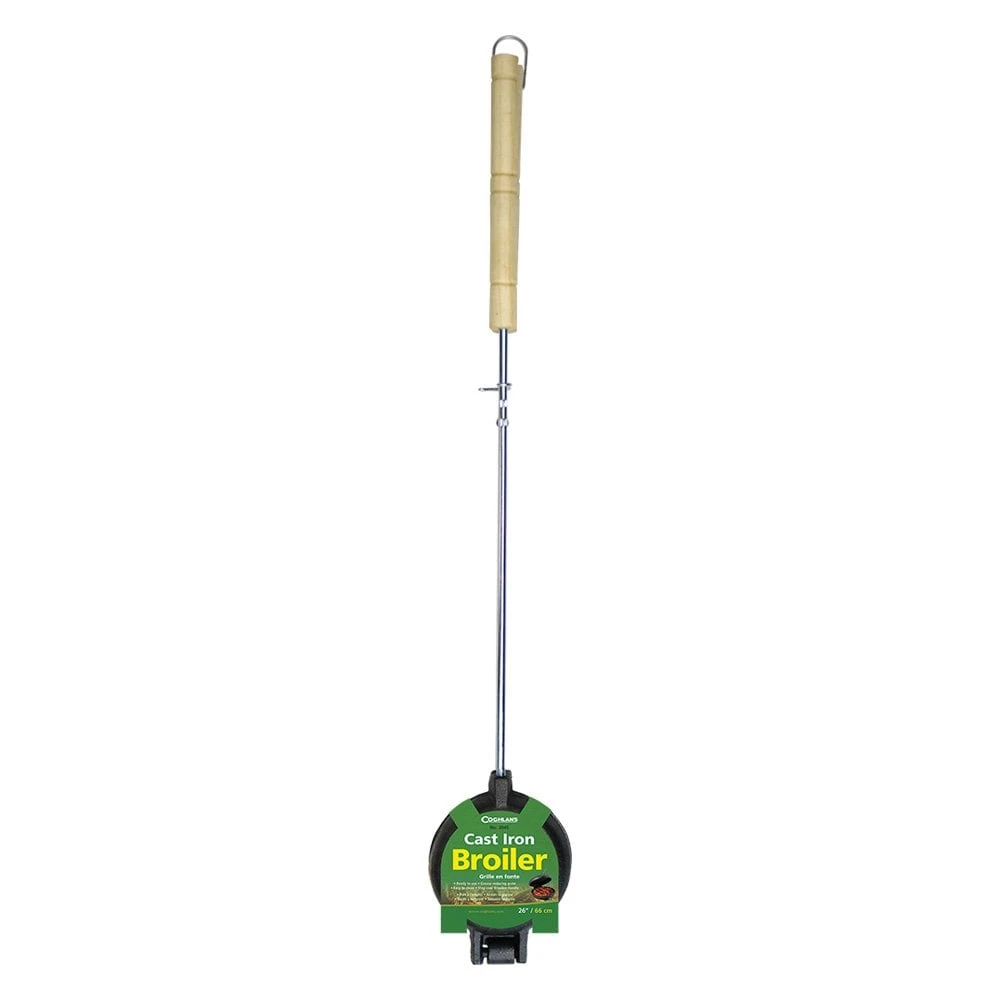 Cast Iron Broiler by Coghlans®. Coghlan’s Cast Iron Broilers are great for cooking all sorts of foods from snacks to main courses to dessert. Made with pre-seasoned cast iron for cooking over the heavy heat of campfires or barbecues. The open slots on each side of these broilers let grease escape. These Broilers are made for cooking burgers but are also great for cooking chicken, steaks, veggies, and much more. Removable handles and the open-hinged design make the Broilers easy to take apart and reassemble for simple cleaning and convenient storage. The stay-cool wooden handles and locking s-clips ensure that your cooking experience is comfortable and hassle-free.