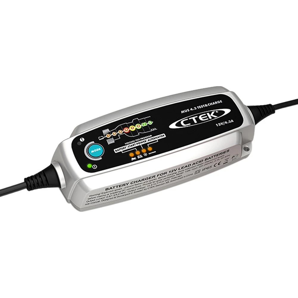MUS 4.3 TEST&CHARGE™ 12 V Compact Battery Charger by CTEK®. The MUS 4.3 TEST&CHARGE combines an advanced micro-processor controlled battery charger with a battery and alternator test function to provide the ultimate in battery testing, charging and maintenance. The MUS 4.3 TEST&CHARGE is easy and safe to use, protects vehicle electronics, spark-free, reverse polarity protected and short circuit proof.