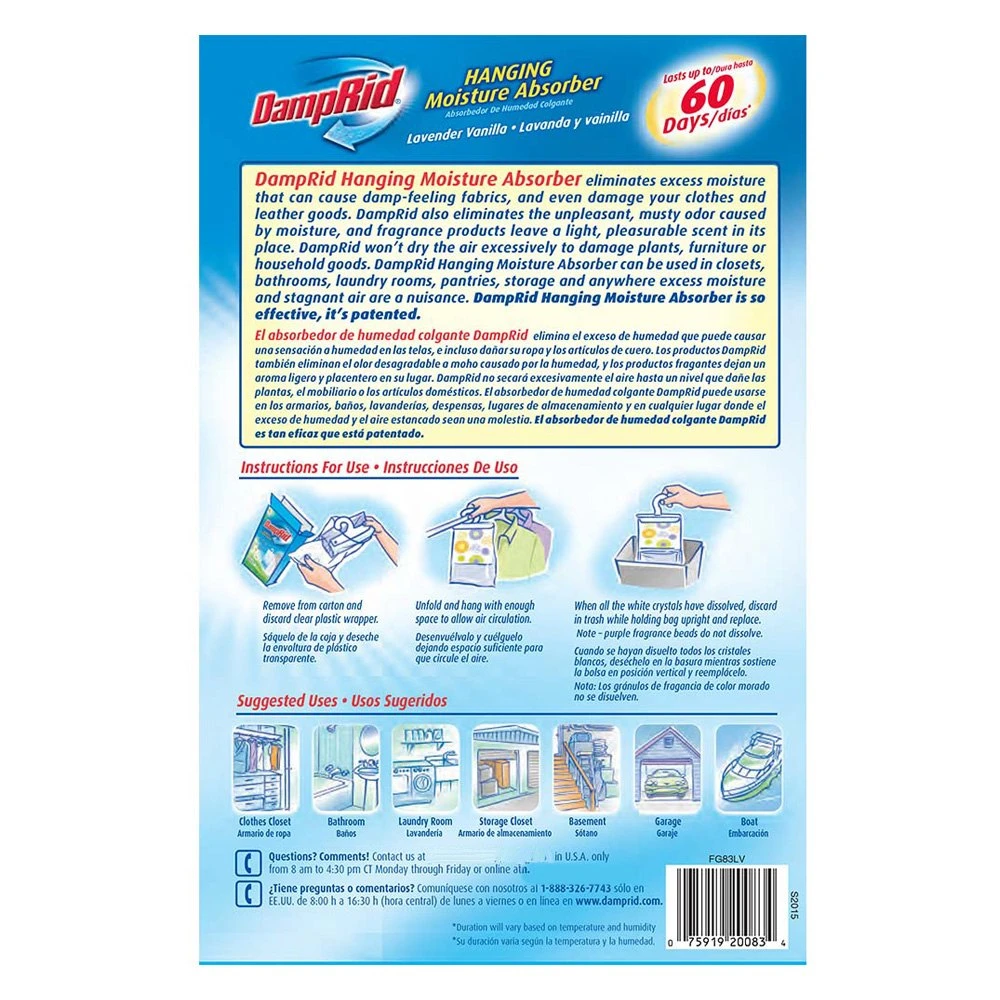 14 oz. Hanging Moisture Absorber (FG83LV) by Damprid®. 3 Pieces. This product is designed to effectively absorb odor and/or moisture and ensure a fresh, pleasant smell in your RV thus making your camping a more comfortable and entertaining experience. The product is fabricated using advanced, premium-grade materials and innovative equipment in compliance with strict requirements for quality. It’s provided at an affordable price.