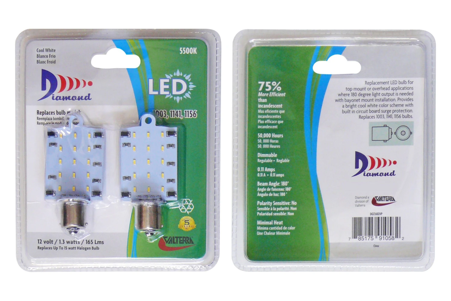 135 lm 15W Bright White LED Bulb (1141) (DG72602VP) by Diamond Group®. 2 Pieces. When it’s dark outside, you want to spend a cozy evening inside your RV. And it’s almost impossible without functional indoor lighting. This superior product is meant to provide excellent lighting performance and ensure long, dependable service. It was produced using advanced materials for high effectiveness and uncompromising value. Invest in quality products we provide and benefit from reliable lighting solutions.