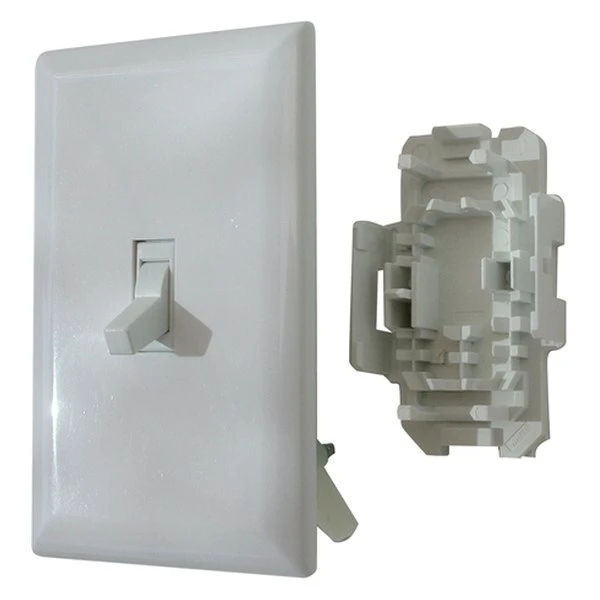Speed Box™ Single DPST On/Off White Lighting Switch by Diamond Group®. A self-contained, heavy duty, two-part system that allows installation of the receptacle without a stud or box, this 2 pole, 3 wire, 15A/125V AC white speed box toggle switch with a snap-on cover features screw mount and is UL listed and CSA approved.