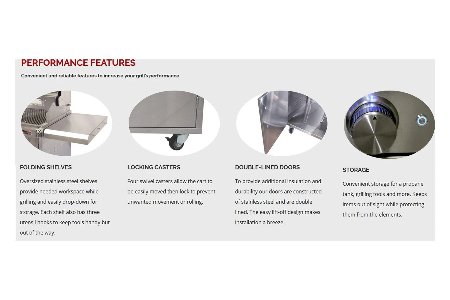 - STORAGE – Convenient storage for a propane tank, grilling tools and more. Keeps items out of sight while protecting them from the elements
