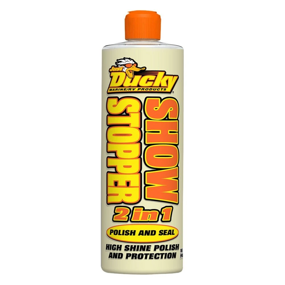 128 oz. Sealant & Polish (D-1030) by Ducky®. The 1st compound and polish that finishes like a wax delivering a smooth polished and sealed finish. This ultra refined cutting polish was developed to achieve the finest level of optical clarity. Formulated for extended work time Show Stopper is powder and dust free capable of removing light to moderate paint defects permanently, delivering perfect results without filling in or covering up. Optical Grade micro abrasives rapidly eliminate imperfections and will remove 2000-2500 grit sanding scratches, swirls and holograms. No oils, silicones or fillers.