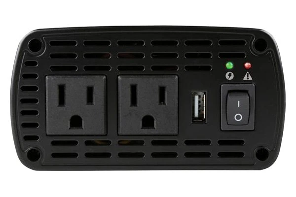 800W 12 DC 115 AC Modified Sine Wave Power Inverter by Duracell®. Ideal for outdoor recreation, mobile entertainment and job sites, the Duracell 800 Watt Inverter supplies up to 800 Watts of continuous power using your car’s battery current. This compact inverter converts vehicle power into usable household AC and USB current. Two 3-prong AC outlets and one 2.1 Amp USB port charge and operate up to three devices at once, powerful enough for entertainment equipment, handheld tools, small appliances and electronics.