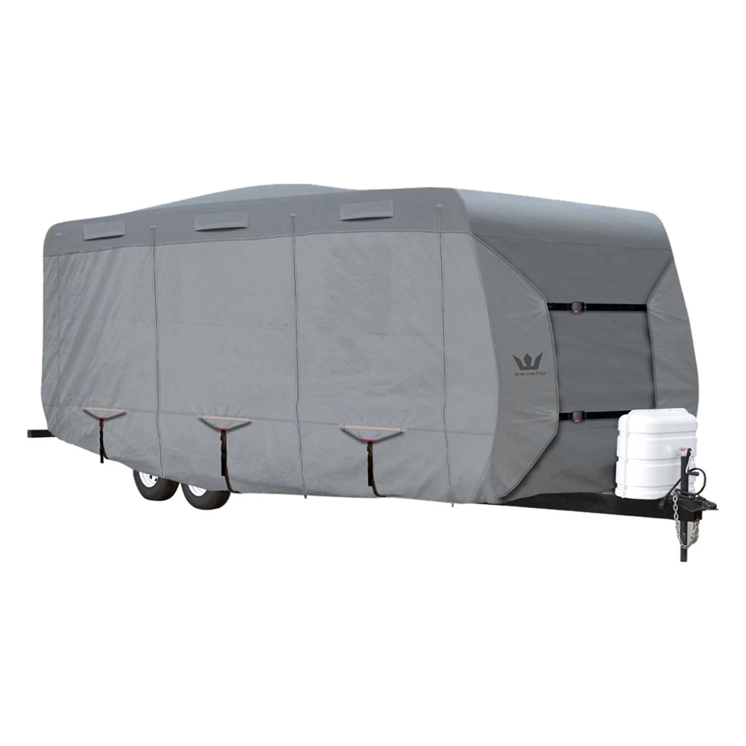 Expedition™ S2 Gray Travel Trailer Cover (Gray, Up to 28.5′) (EX2TT2728G) by Eevelle®. Is the next generation of RV Cover, combining technical enhancements with cutting edge design. This superior cover is loaded with desirable features including Polyester marine grade fabric roof, large EZ fit flags on front and rear, quick release web strap system for easy install, and heavy duty full height access zippers all the way around the cover.