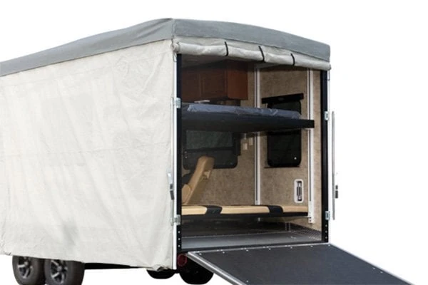 Expedition™ Gray 5th Wheel Trailer Cover by Eevelle®. Expedition RV covers are designed for durability with advanced UV blockage and a custom-like fit so you will feel comfortable knowing your RV is protected. Innovative features like sewn-in Vortex Vents for breathability and heavy-duty fabrics make Expedition truly the best value in protective coverings for your RV