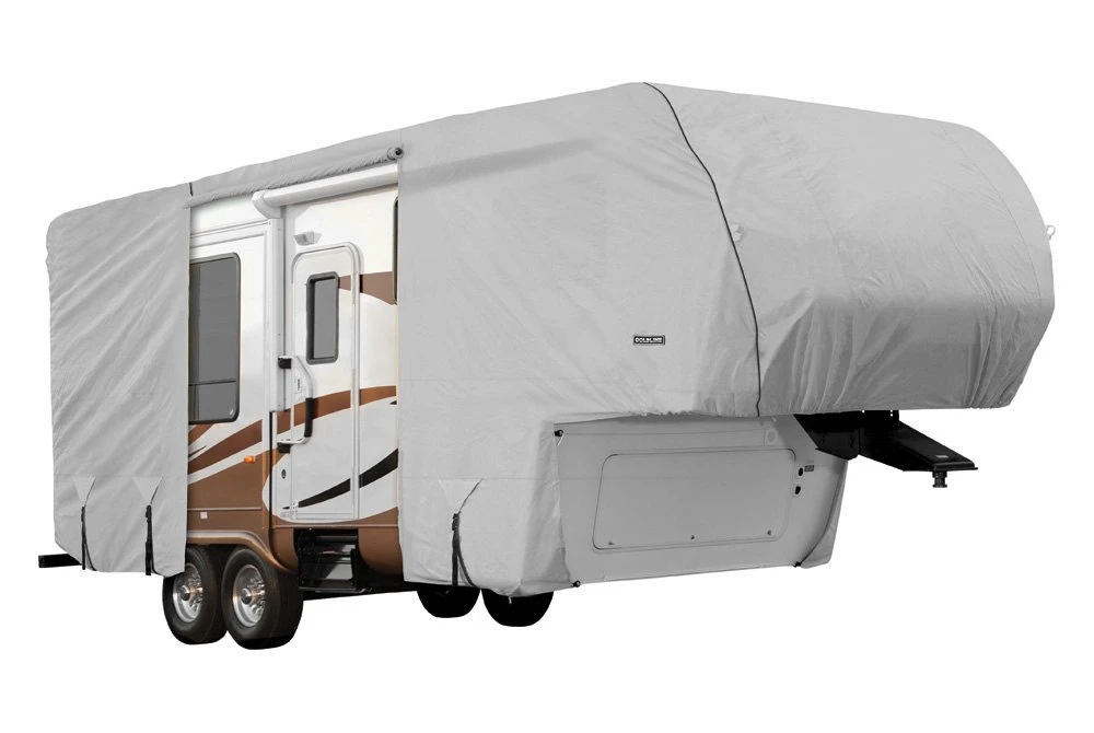 Goldline™ 5th Wheel Trailer Cover by Eevelle®. Goldline RV covers are designed to satisfy even the most discriminating customers by outperforming every other cover in all critical categories of RV protection. Precision design and expert tailoring with the finest materials make this a high end RV cover that is as durable as it is beautiful.