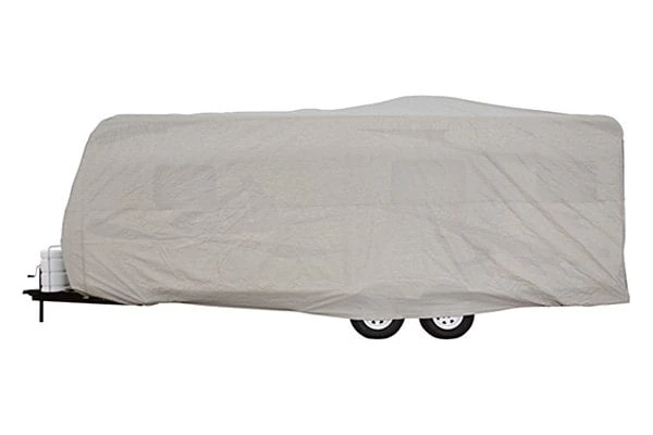 Traveler™ Gray Travel Trailer Cover (Gray, Up to 24′) (TTT2224) by Eevelle®. Designed to be rugged, durable and economical, yet provide the same quality of protection that you would expect from a much more expensive cover. Protect your investment season after season with the best 100% Polypropylene cover on the market.