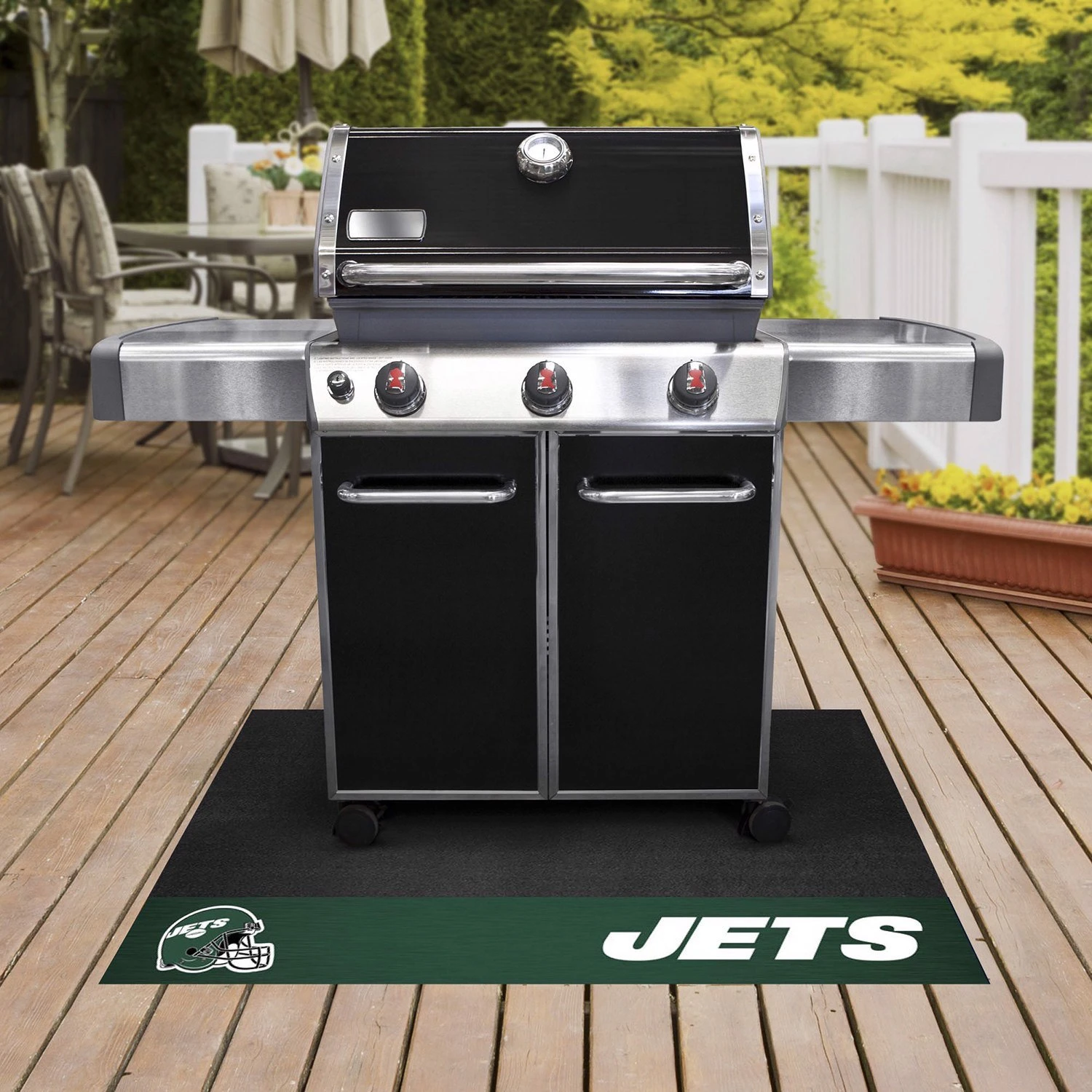 NFL “New York Jets” 26″ x 42″ Grill Mat with “Oval NY Jets” Logo & “Jets” Wordmark (12195) by FanMats®. Are you a die-hard sports fan that likes to show off your team pride even while grilling? Then Grill Mats by Sports Licensing Solutions were made for you. Both practical and decorative, they protect your deck or patio while displaying your favorite team!