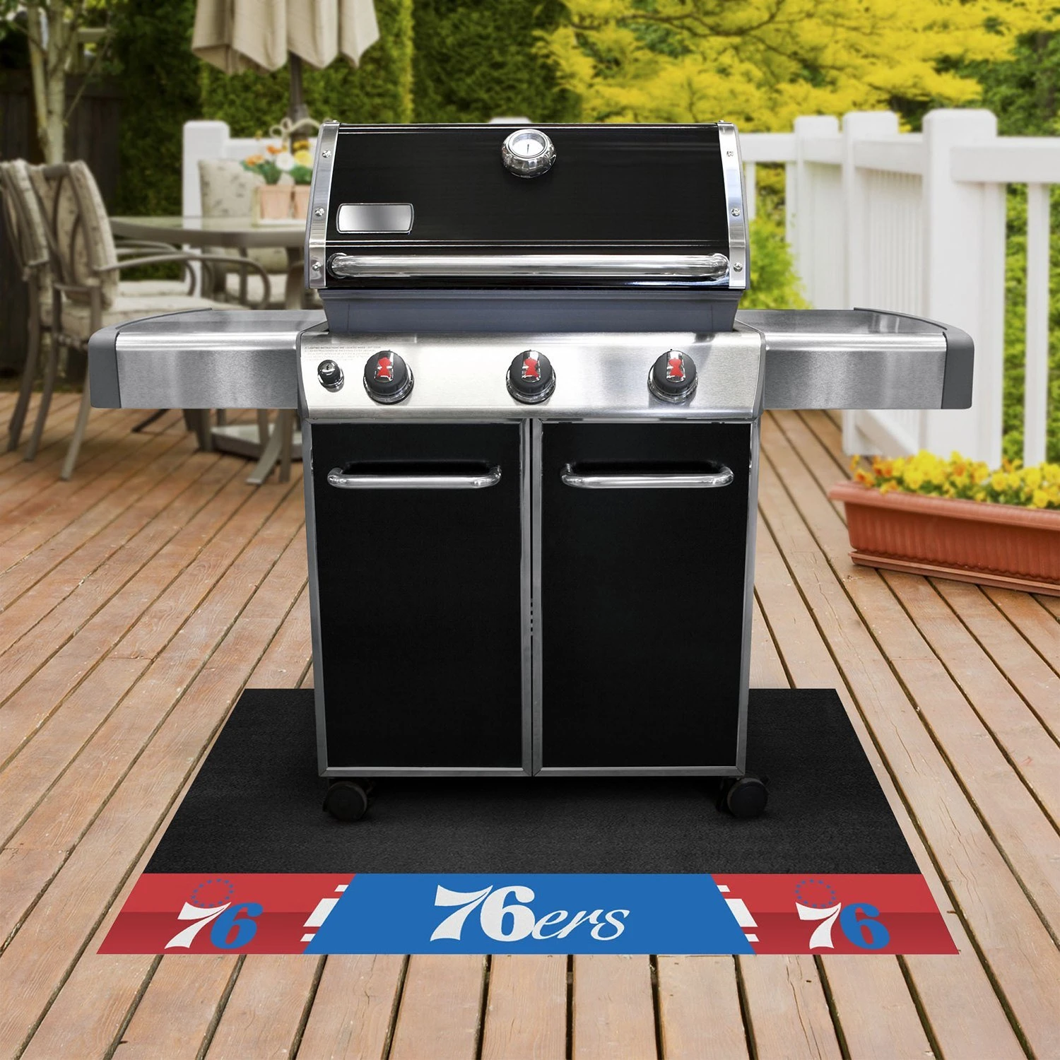 NBA “Philadelphia 76ers” 26″ x 42″ Grill Mat with “76 & Stars” Primary Logo (14217) by FanMats®. Are you a die-hard sports fan that likes to show off your team pride even while grilling? Then Grill Mats by Sports Licensing Solutions were made for you. Both practical and decorative, they protect your deck or patio while displaying your favorite team!