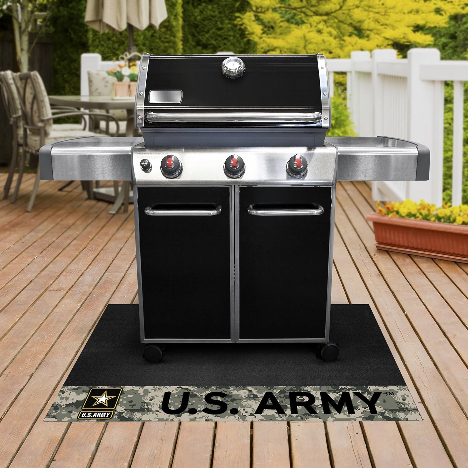 Military “U.S. Army” 26″ x 42″ Grill Mat with Camo “U.S Army” Official Logo (15682) by FanMats®. Are you a die-hard sports fan that likes to show off your team pride even while grilling? Then Grill Mats by Sports Licensing Solutions were made for you. Both practical and decorative, they protect your deck or patio while displaying your favorite team!