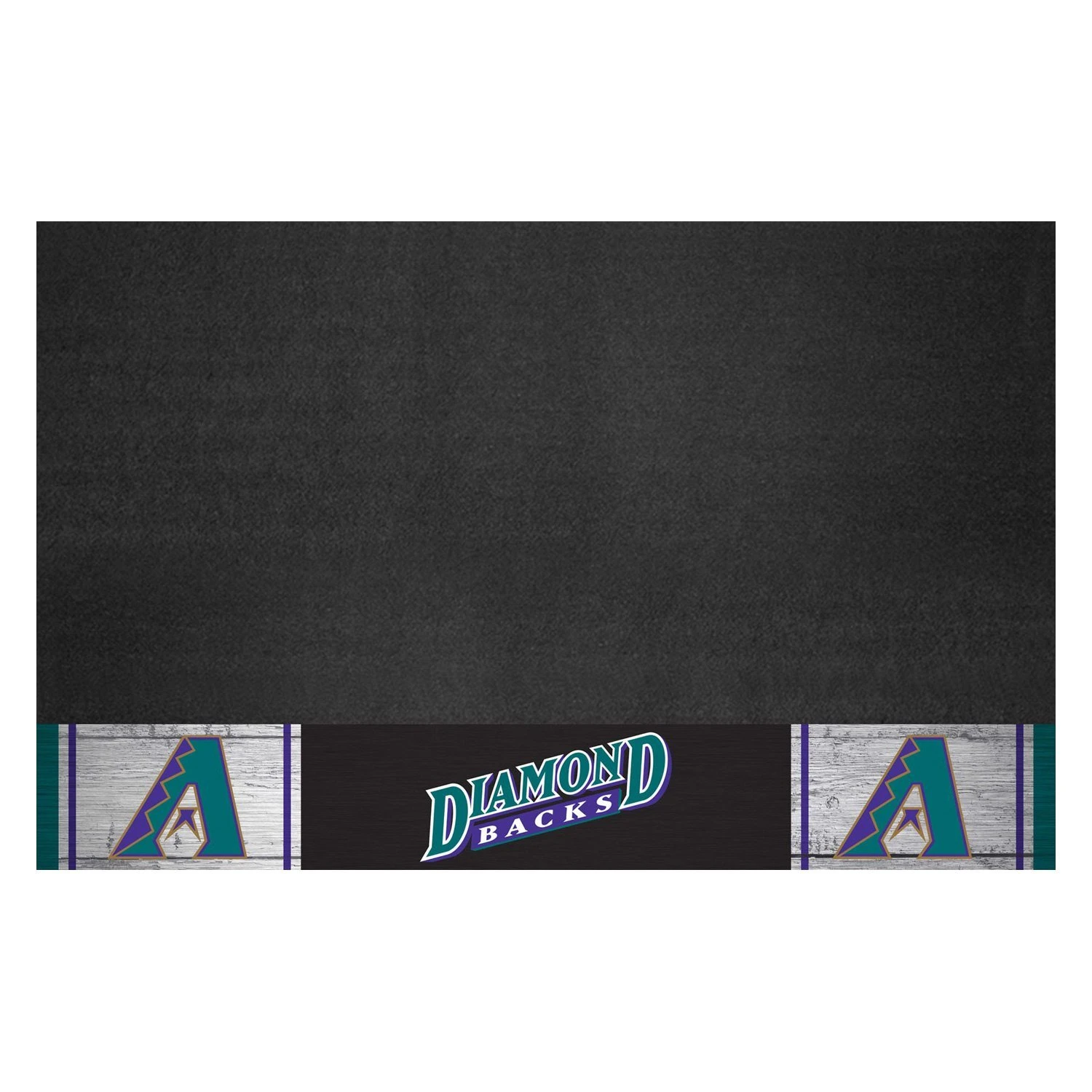 MLB “1998 Arizona Diamondbacks” 26″ x 42″ Retro Grill Mat (2295) by FanMats®. Then Grill Mats by Sports Licensing Solutions were made for you. Both practical and decorative, they protect your deck or patio while displaying your favorite MLB Retro Logo! These 100% vinyl Grill Mats fit under most grills, prevents spills from soaking in and staining, and cleans up easily with a garden hose. Keep the mat clean by spraying with water and wiping with a soapy cloth. Not to be used on composite decking material. Made in the USA.