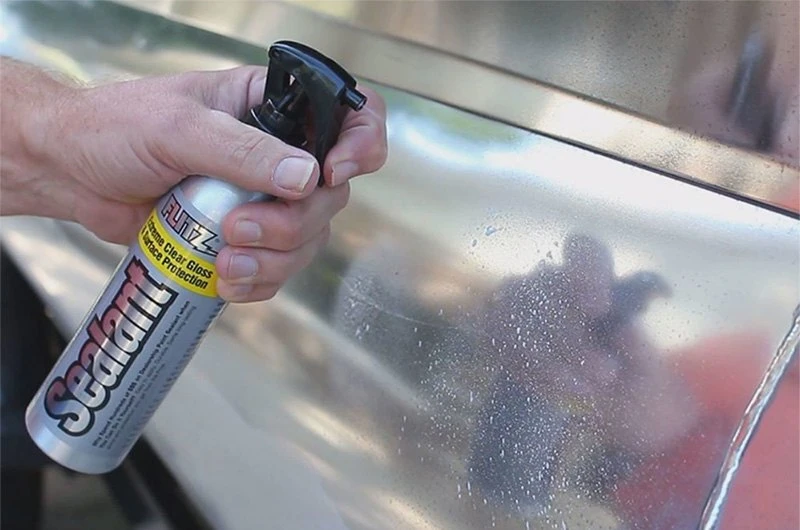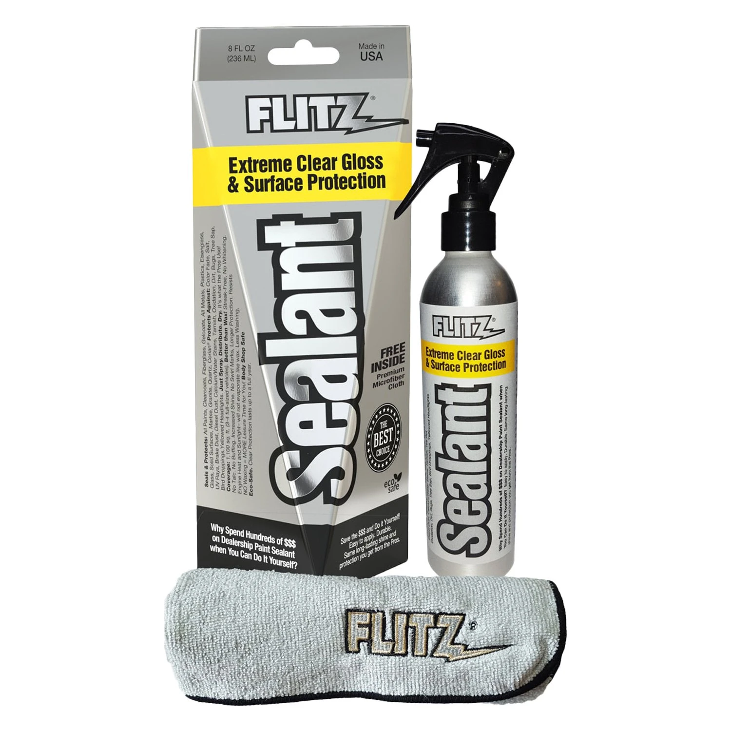 8 oz. Pollution Sealant with Microfiber Polishing Cloth (1 Piece) by Flitz®. A unique product to Flitz! This is a hydrophobic spray (meaning; immediate repelling of water) that is safe on All Metals, Fiberglass/Glass, Clear Coats, All Paints, Plastics, Granite, Glass, And All Man-Made Hard Surfaces.