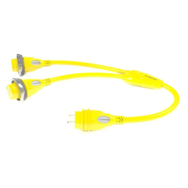 Furrion Y-Adapters are engineered for durability in the harshest environments and constructed with heavy-duty, marine grade materials. Designed for safety, the bright blue LED Powersmart™ voltage indicator provides instant connectivity status. With a modern design and sleek appearance, all Furrion Y-adapters feature ergonomic, molded side grips, NEMA universal fit with other brands up to 600V, 105°C. Furrion Y-Adapters meet global industry standards, and are backed by a 5-year warranty.