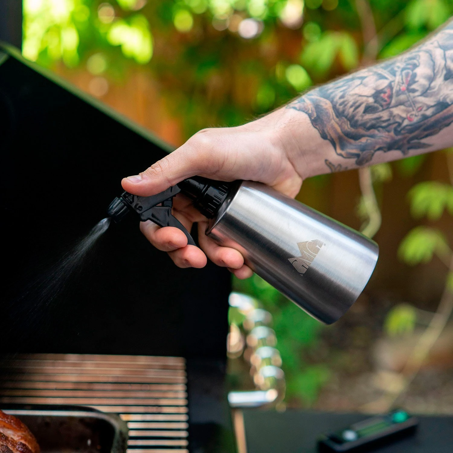 Stainless Steel Spritz Bottle by GMG®. BBQ like a pro and with this handy stainless steel spritz bottle. Keep your bbq moist and full of flavor! This product is made of high-quality materials to serve you for years to come. Designed using state-of-the-art technology and with customers in mind. It will meet your needs and deliver great quality at an affordable cost.