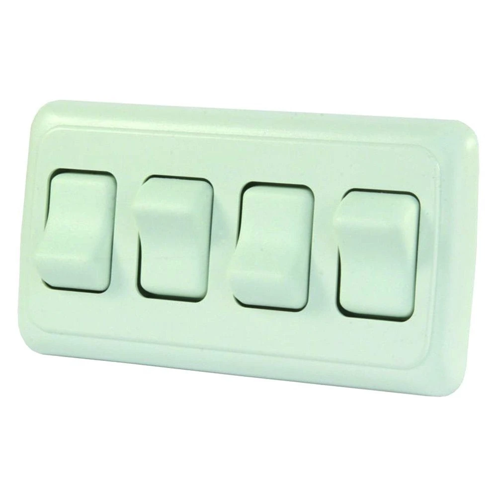 Quad SPST On/Off White Lighting Switch by JR Products®. 1 Piece. Designed with high precision and functionality in mind to provide flawless, reliable service and make camping a safe and more comfortable experience. The product is intended especially for RV applications. It’s manufactured from superior-grade materials using innovative equipment to provide dependable quality and superior value. It’s expected to serve you for the long haul.