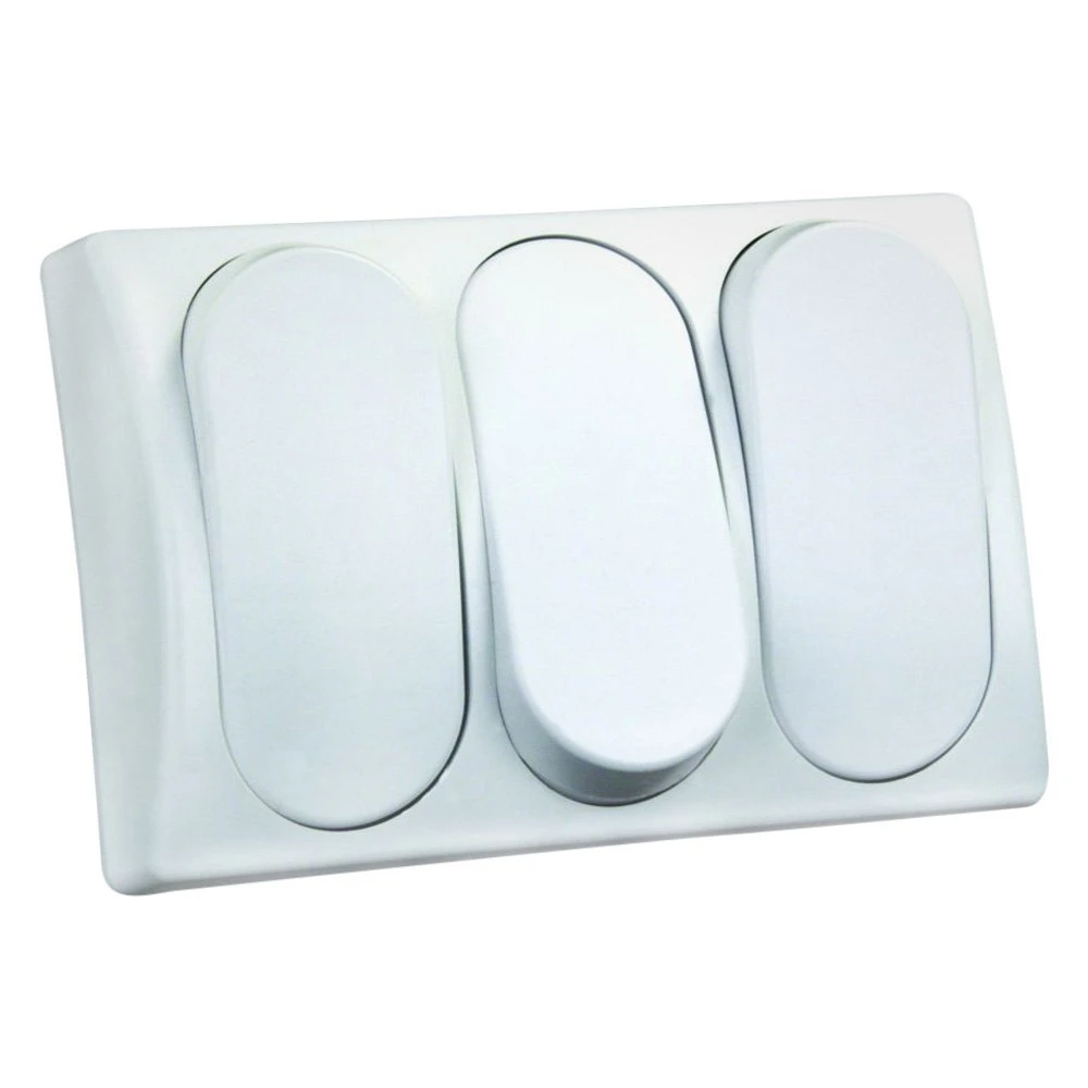 Triple SPST On/Off White Modular Lighting Switch by JR Products®. 1 Piece. Designed with high precision and functionality in mind to provide flawless, reliable service and make camping a safe and more comfortable experience. The product is intended especially for RV applications. It’s manufactured from superior-grade materials using innovative equipment to provide dependable quality and superior value. It’s expected to serve you for the long haul.