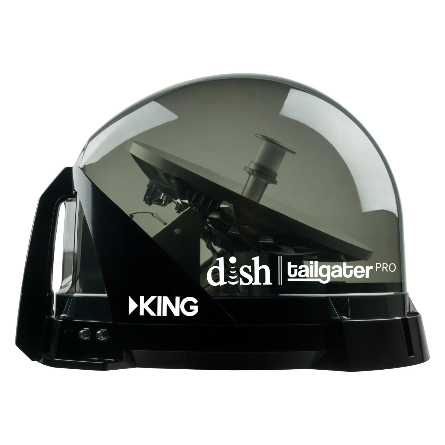 Tailgater™ Pro Premium Portable 1 Receiver Satellite TV Antenna with Receiver by King®. With KING’s next-level satellite antenna technology, your choice for satellite TV is clear. Bring the best entertainment to any outdoor event with the completely reengineered DISH™ Tailgater™ Pro. This reengineered, fully automated, premium HD satellite TV antenna includes an ultramodern, clear cover – always know where your antenna is pointing, an industry 1st! It’s simply better, by design. With the Tailgater Pro, enjoying your favorite HD DISH satellite TV service is easier, faster and more reliable than ever before. The Tailgater Pro starts scanning faster and completes the scan more quickly than ever before. Includes 100% nationwide coverage (western and eastern hybrid arc: 61.5, 110, 119). Ideal for RVers, sporting and outdoor enthusiasts, tailgaters, long haul truckers or anyone with an active mobile lifestyle, the Tailgater Pro allows you to take DISH satellite TV service with you anywhere in the continental U.S.