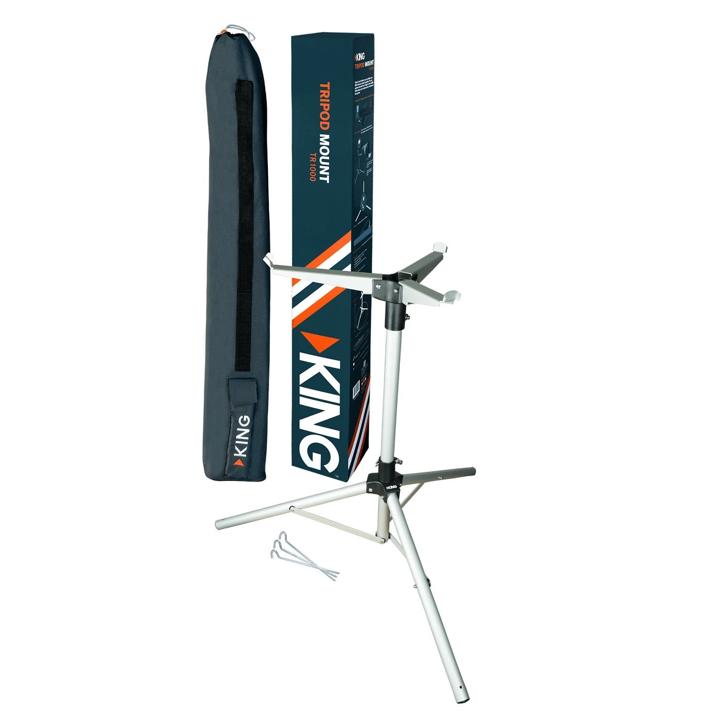 Tri-Pod Mount for King Quest Antennas by King®. The KING Tripod Mount allows you to elevate your KING Portable Satellite TV antenna – specifically your DISH® Tailgater®, DISH® Tailgater® Pro, KING Tailgater®, KING Quest™, or KING One Pro™- to deliver the best line of sight to the satellite while protecting your antenna from moisture on the ground. It provides an extra wide footprint to ensure stability, and is a convenient way to provide height without having to permanently mount your satellite TV antenna to the roof of your RV, camper or trailer.