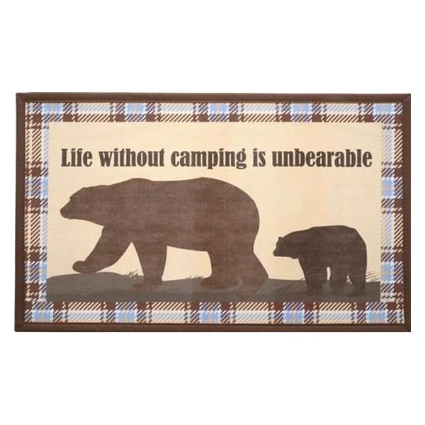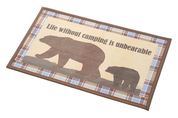 “Life Without Camping Is Unbearable #2″ 18″ x 30” Rubber Door Mat (STRB-14855-20) by Kittrich®. Printed with our custom camping designs, our doormats are environmentally friendly as they are crafted from durable recycled rubber. Each mat is engineered to maximize scrapping power to clean your shoes and trap the dirt. The recycled rubber also provides a non-slip backing for safety. Perfect for all entryways of your home or RV.