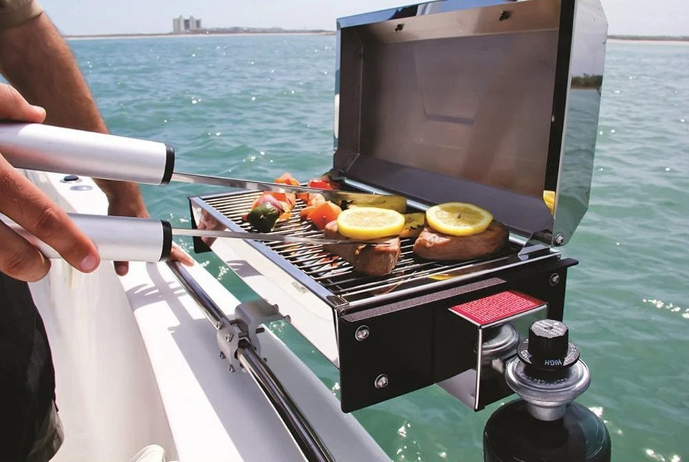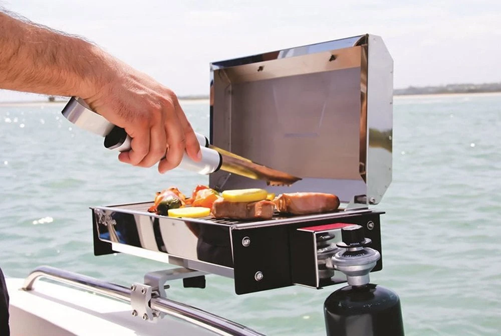 Profile 150 Gas Grill (58121) by Kuuma®. The Kuuma Profile 150 Grill is the perfect portable grill for the chef with limited storage space. Its compact size is perfect for when space is at a premium. Profile grills can be easily transported and can also be mounted to any Kuuma rail, rod or pedestal mount. Standard features include stainless steel construction, stay cool handle and integral folding legs and latching lid. Mounts to your boat or RV. Designed for high pressure, disposable 1 lb propane canisters or larger refillable tanks with hose attachment. Canisters, tanks and hoses sold separately.