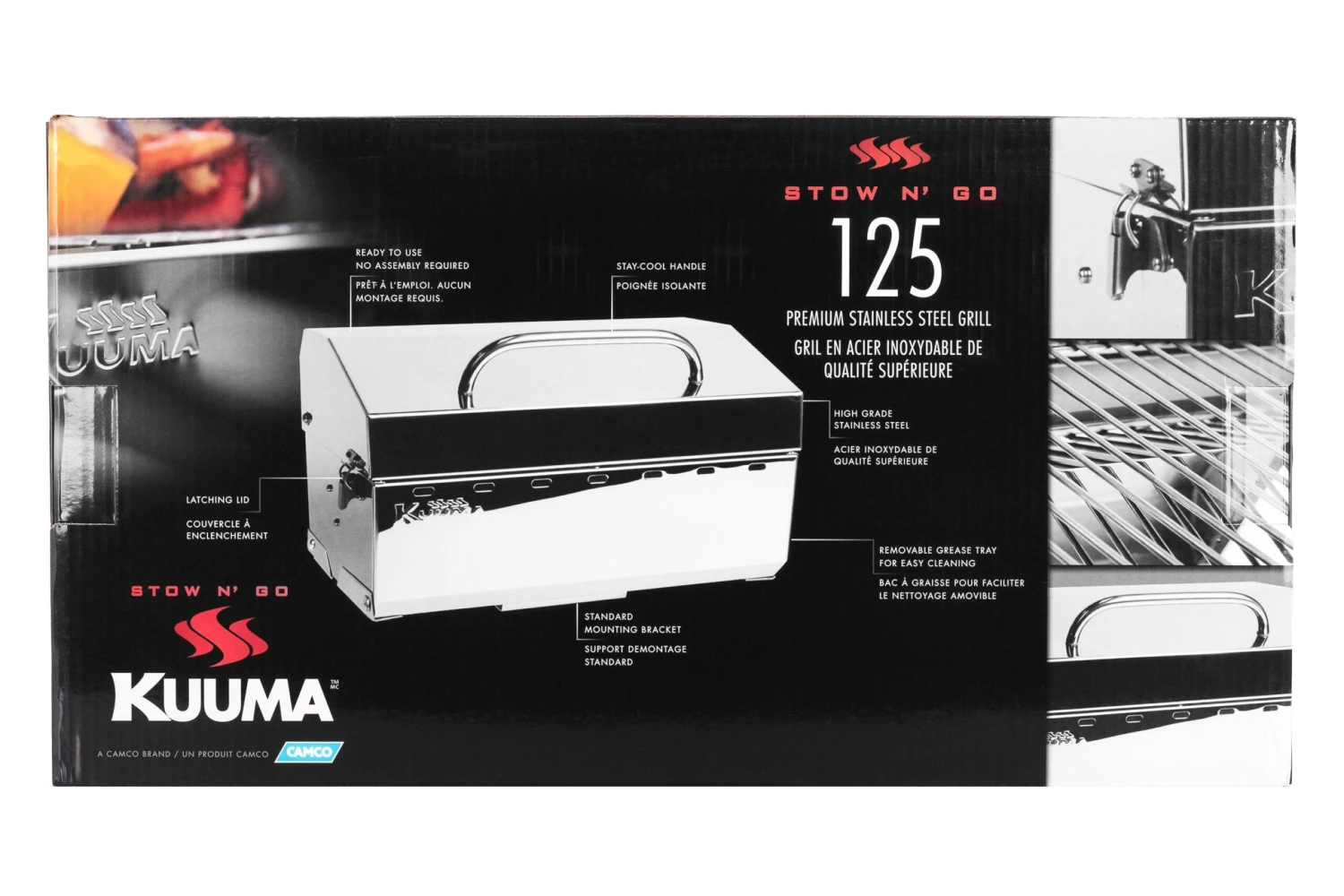 Stow N’ Go 125 Gas Grill (58140) by Kuuma®. The Kuuma Stow N’ Go 125 Grill is an outstanding grill that offers premium-quality construction and convenient portability. Its compact size is perfect for when space is at a premium. Stow N’ Go grills can be easily transported and can also be mounted to any Kuuma rail, rod or pedestal mount. Designed for high pressure, disposable 1 lb. propane canisters or larger refillable tanks with hose attachment. Canisters, tanks and hoses sold separately.