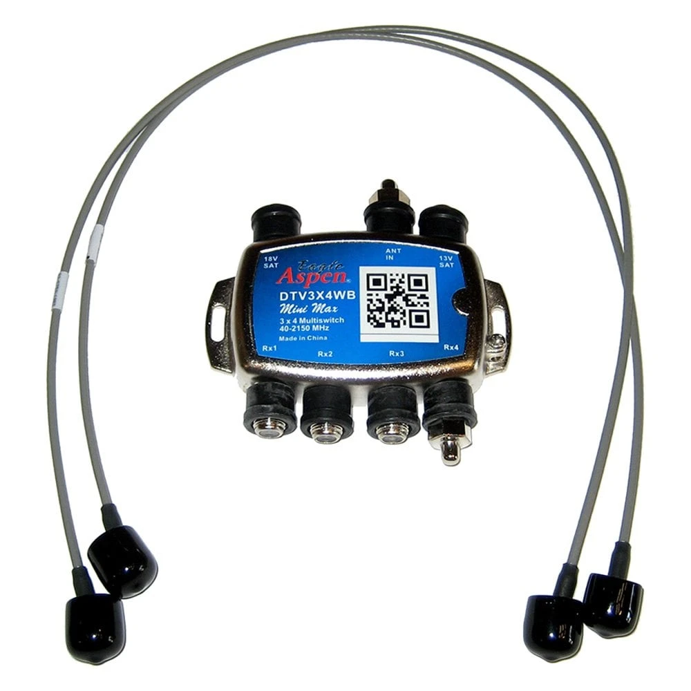 Aspen™ 3×4 Multiswitch Kit by KVH®. This top-notch product will help you get the high-quality signal in your RV needed to enjoy maximum entertainment on your next camping trip. Built with your rugged outdoor adventures in mind, this durable product features a robust design to survive the toughest weather conditions. Thanks to high-quality craftsmanship and materials, it ensures the perfect fit and will provide years of reliable function.