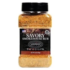 16.0 oz. 16 oz. Savory Smokehouse Rub by Louisiana Grills®. Elevate the flavor of your dishes with the Louisiana Grills® Savory Smokehouse Rub. This medley of garlic, onion, horseradish is paired with mesquite smoke for a balanced smoky and savory bite. Try it on your favorite cuts of beef, lamb or chicken.