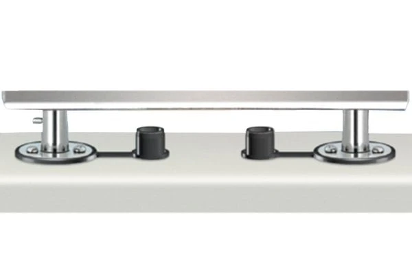 Dual Locking Flush Deck Socket Mount by Magma®. Heavy Duty. Two attractive mirror polished 18-8 stainless steel flush deck socket sets features a push button lock pin to allow use while underway. Includes a flange gasket with integral flip-up water seal cap. Some fasteners required for installation.