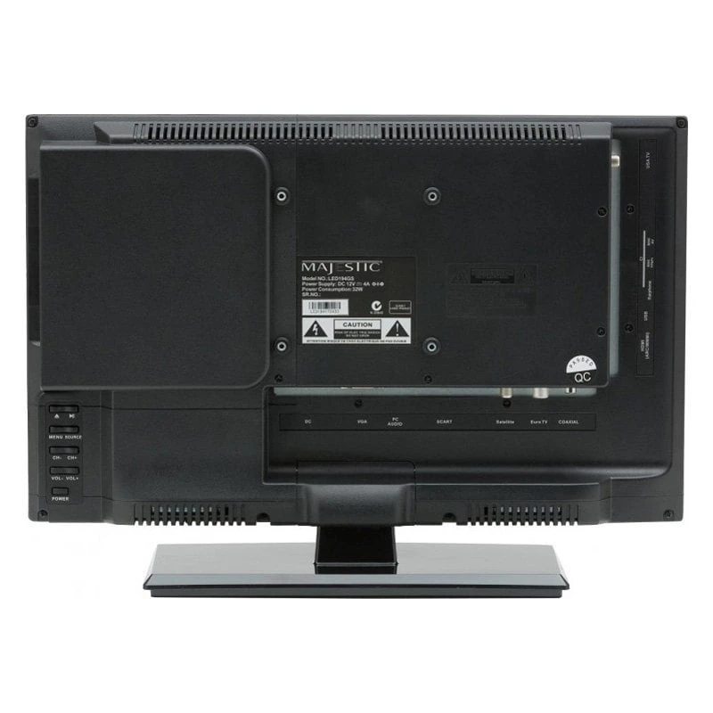 19″ HD LED TV with Built-In Global HD Tuner by Majestic®. This high-grade product was fabricated especially for the needs of RV owners. It was engineered with high precision to stringent industry standards for reliable, seamless service. The product was crafted using durable, long-lasting materials to ensure high impact resistance. It is meant to make your campering experience safer and more entertaining.
