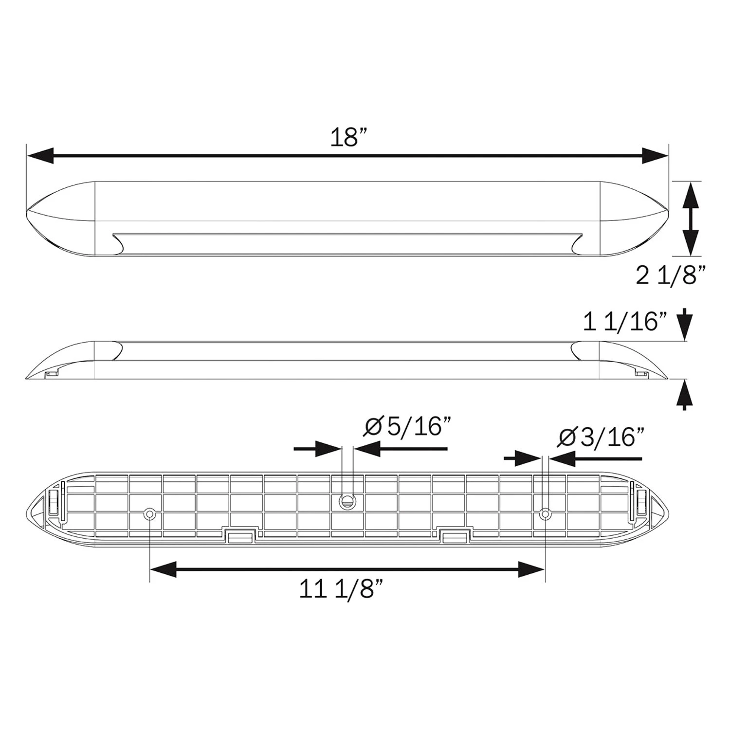 | Dimensions: 18″ W x 2.125″ H x 1.063″ D |
