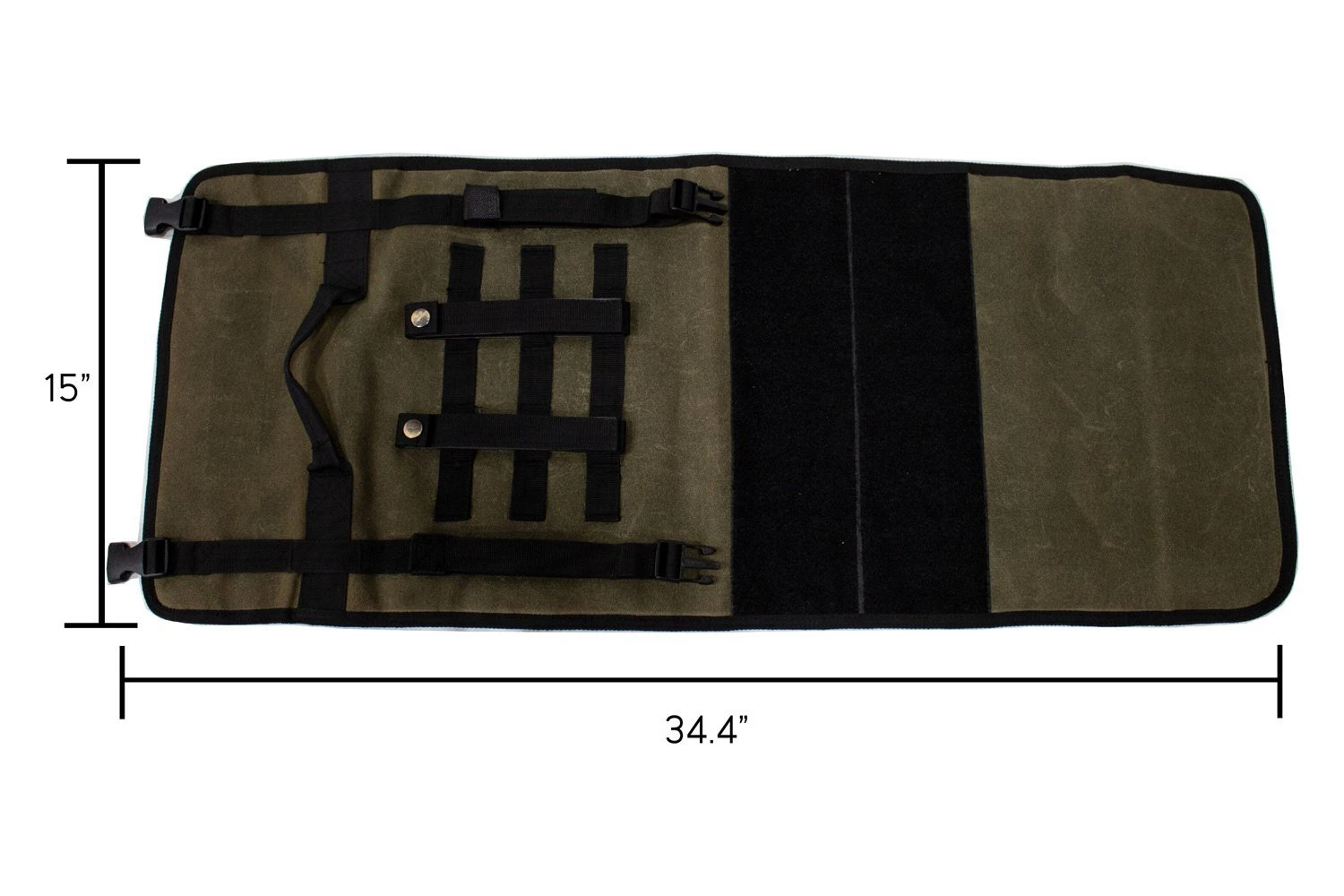 First Aid Rolled Bag by Overland®. Canyon line of bags come in a variety of options and are eco-friendly alternative to the ballistic Nylon. Each bag has been handcrafted out of premium cotton infused with Parrifin, known as Wax Canvas, which is a waterproof breathable material. Handcrafted to exacting specifications featuring reinforced stitching, heavy-duty zippers and oversized buckles; Overland Canyon Bag line up ranges from tool bags, first air bags, general purpose to a portable trail/trash bag and everything in between. What is great about Waxed Canvas is as age scuffs & wear marks develop characteristics know as patina which is why waxed canvas timeless and last you lifetime with very little maintenance.