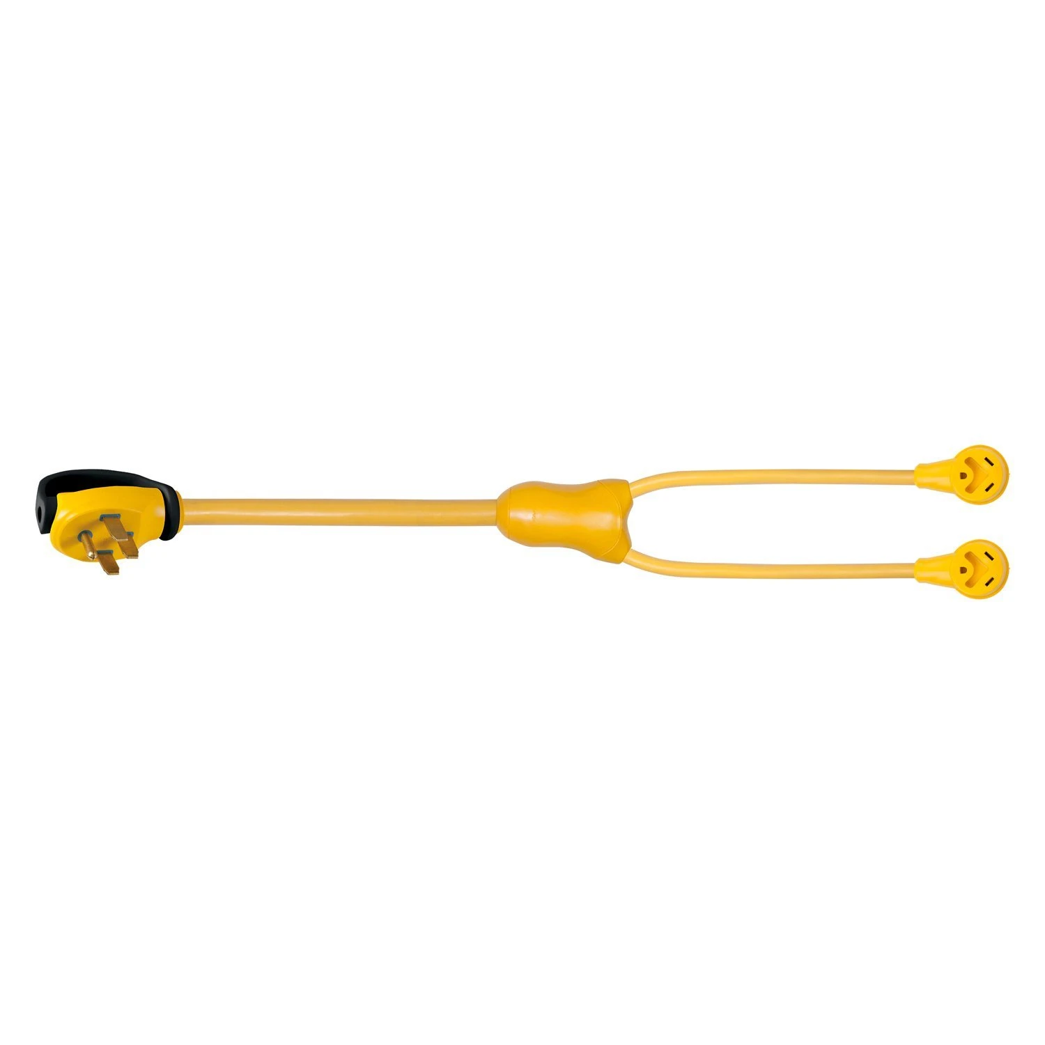 Dogbone Power Adapter (50A Male x 30A Female x 30A Female) (169AYRV) by ParkPower®. Y and reverse Y adapters are commonly used as a power connection for marine applications, as they allow for more than one dockside connection. Y adapters are used in wet locations and power dockside tools, equipment or even a 2nd boat.