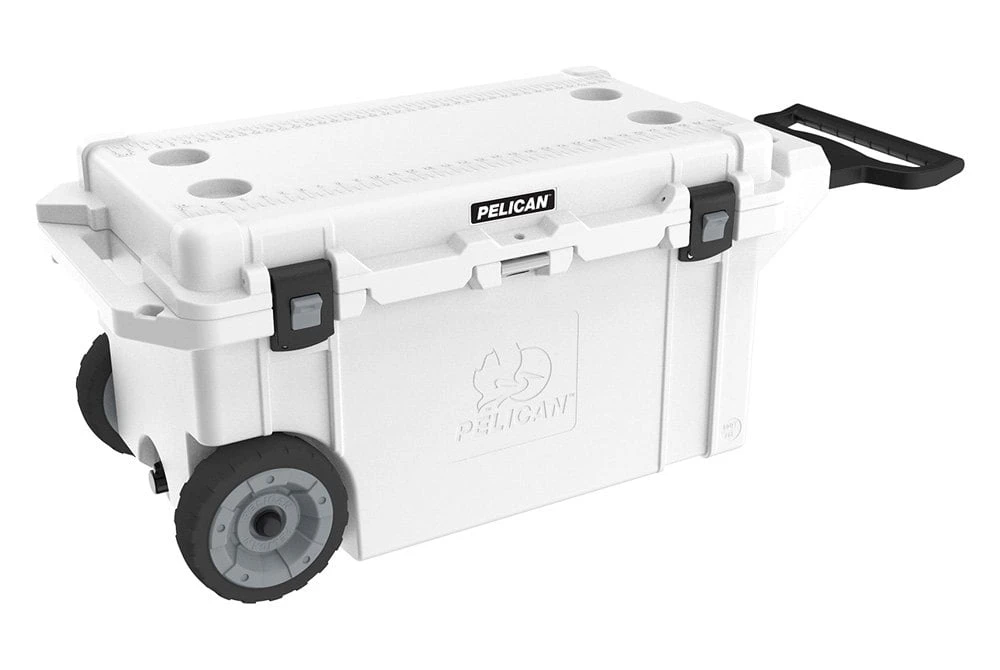 Elite 80 qt Tan Wheeled Hard Cooler by Pelican®. Pelican Products, Inc. has protected defense, emergency and scientific expedition equipment through some of the harshest conditions on Earth since 1976. This same DNA is now available to you in Pelican™ Elite Coolers. We hold ourselves to higher criteria than other cooler makers. When it comes to durability, performance and ergonomic design, just “good enough” doesn’t cut it. As a result, Pelican™ Elite Coolers perform to higher standards — better than any cold locker, tougher than any icebox. Pelican™ Elite Coolers are true next-generation innovations, created to last a lifetime. From the latches to the freezer-grade seal to the toughest handles in the business, every part is engineered to extreme durability and performance standards. Which is why we feel confident in providing you with a Lifetime Guarantee. Not three years. Not five years. A lifetime. Something the other makers don’t (or can’t) do. Whether you’re on the hunt of a lifetime, far out at sea with a cooler full of catch, crossing deserts on safari or simply tailgating during a big game – the Pelican™ Elite Cooler is the one for you.