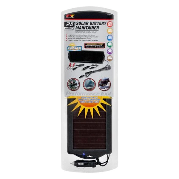 12 V Solar Battery Charger by Performance Tool®. This top-grade product is expertly made in compliance with stringent industry standards to offer a fusion of a well-balanced design and high level of craftsmanship. Manufactured from industry-leading materials using up-to-date equipment, it ensures everlasting reliability and enduring value. This product is distinguished by total quality assurance, unsurpassed by anybody else.