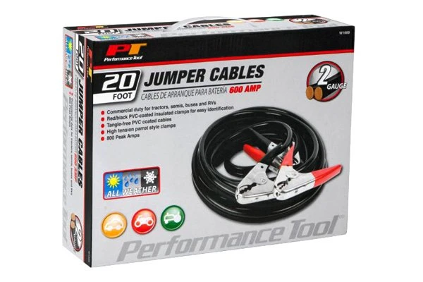 20′ 2 AWG Jumper Cables by Performance Tool®. Imagine a situation when your battery is dead and you are stuck somewhere on the road. A high-performance engine starter is an essential tool to have at hand in emergency situations, while an efficient battery charger will help you fix the problem of a flat battery in a few hours when there is no rush. Get these premium tools and feel confident to start your vehicle, whatever the situation is.