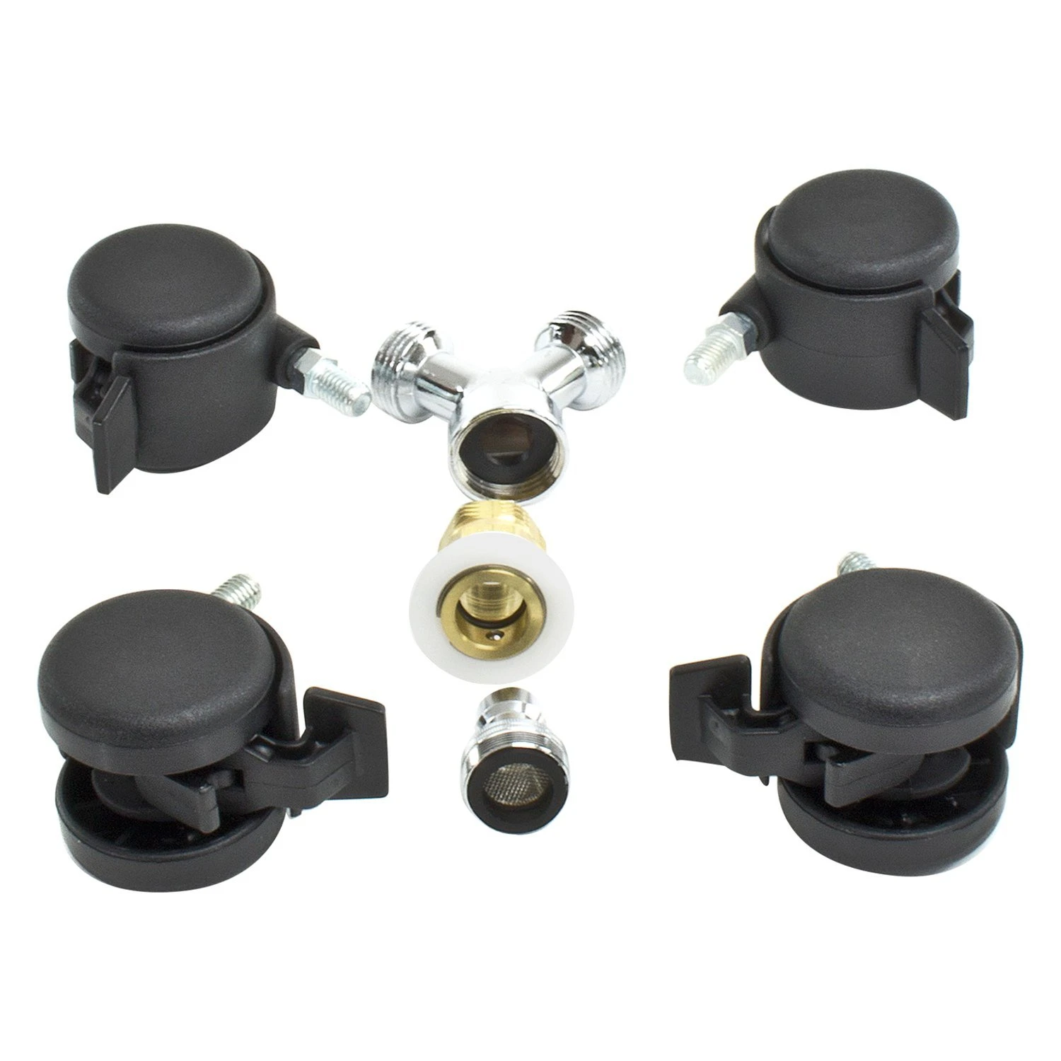Portability Kit by Pinnacle Appliances®. Quantity: 4 Pieces. Washer Specific Design Specialized Appliances designed its portable kit specifically for the rigors of washing machine. Includes 4 castors, faucet adapter & Y-connector to make your machine portable & connect to a single sink faucet. This product is made of high-quality materials to serve you for years to come. Designed using state-of-the-art technology and with customers in mind. It will meet your needs and deliver great quality at an affordable cost.