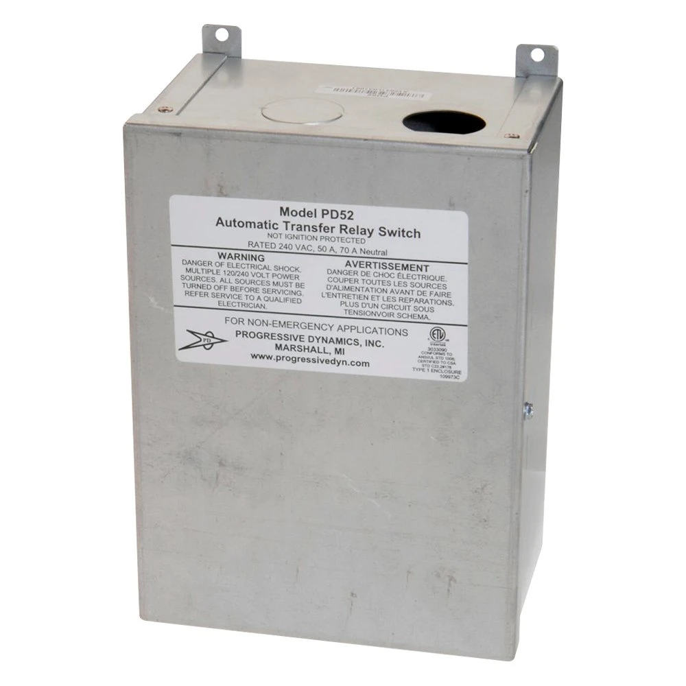 50A Power Transfer Switch (PD52DCSDV) by Progressive Dynamics®. Get the power for your RV when miles away from the civilization with this high-end device. The ultimate in convenience and value, this is a practical solution for just about any RVer. Built to tackle just about anything your rugged adventures can throw at it, this product is made from top-notch materials to ensure reliable, hassle-free functionality for many adventures to come.