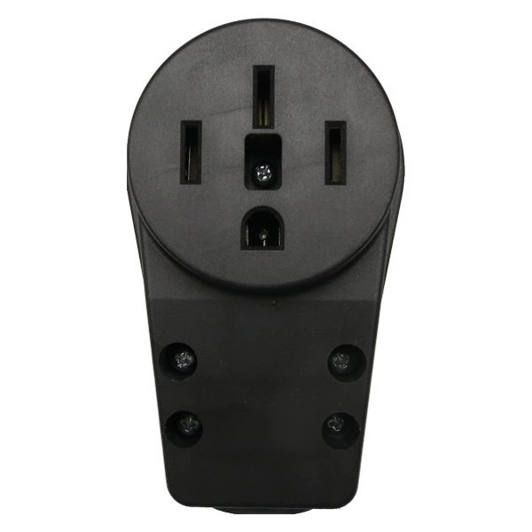 50A Female Adapter Plug with Standard Grip by Progressive Industries®. Progressive Industries replacement female end is designed to replace worn out molded ends on adapters, surge protectors, extension cords or any product with a worn out plug, without having to replace the entire unit. Made of high heat, impact-resistant plastic and heavy-duty highly conductive metal contacts. Thus making the replacement better suited to handle the heat created by heavy loads as opposed to molded-on varieties. Sleek, compact design makes installation straightforward and easy.