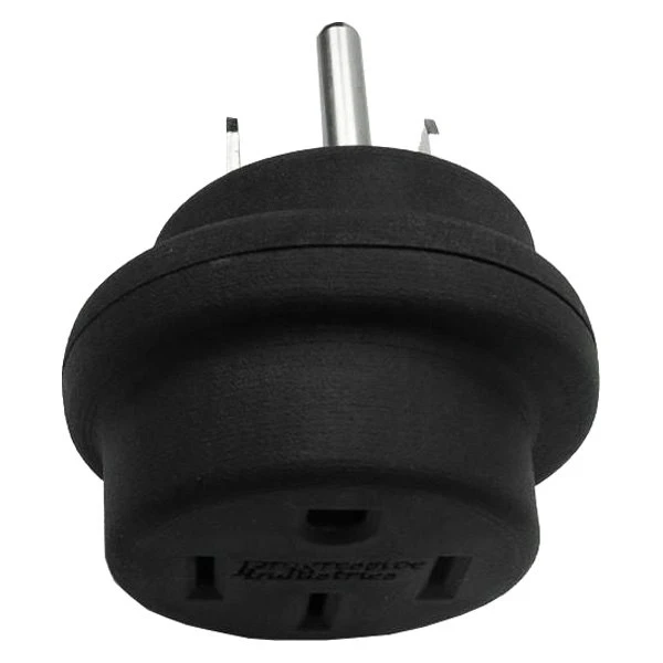 Power Cord Adapter (50A Male x 50A Female) by Progressive Industries®. Progressive Industries’ NEW 50 Amp Extension Plug allows your surge protector to hang vertically when plugged in to the Campground pedestal.