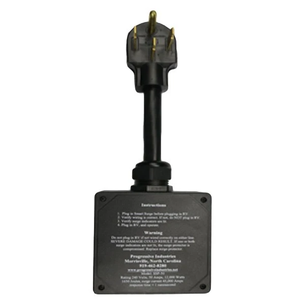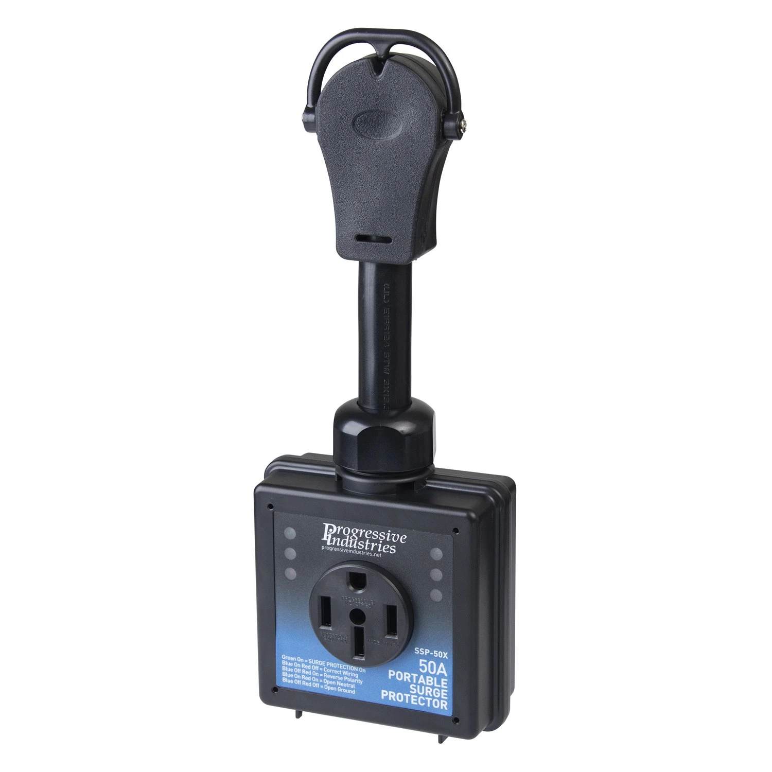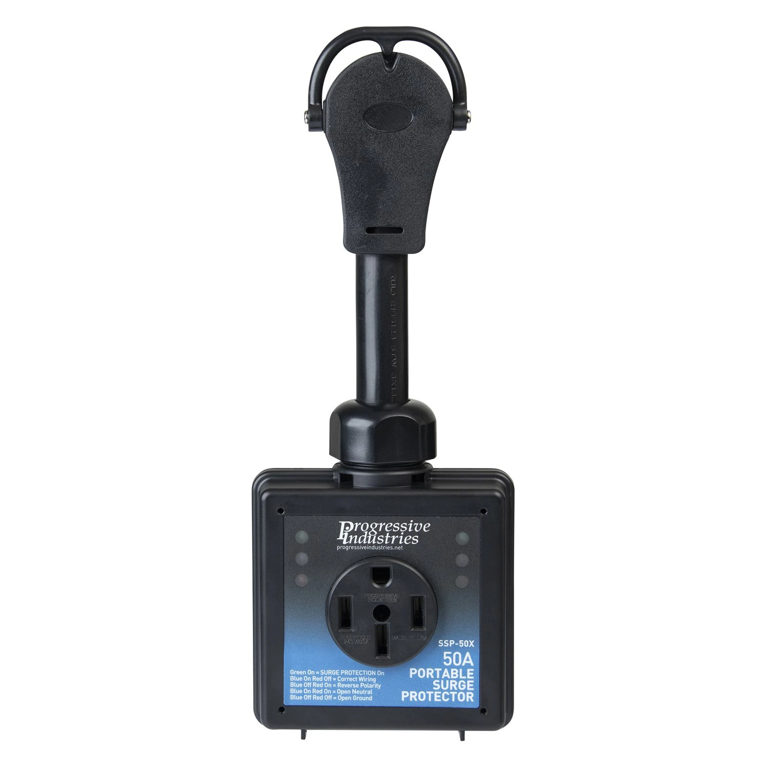 SSP Series 50A Straight Male x 50A Straight Female Surge Protection Dogbone Power Adapter with Standard Grip by Progressive Industries®. 1 Piece. Progressive Industries Smart Surge Protectors (SSP) are portable RV surge protectors with the added benefit of a built-in polarity tester. The built-in surge indicator notes the condition of the surge protector. Additionally, the polarity tester (dual line for 50 Amp) checks the status of the power source prior to use. Sleek, compact portable design makes unit easy to use and store. Plug-and-play application. Designed for recreational vehicle use only.