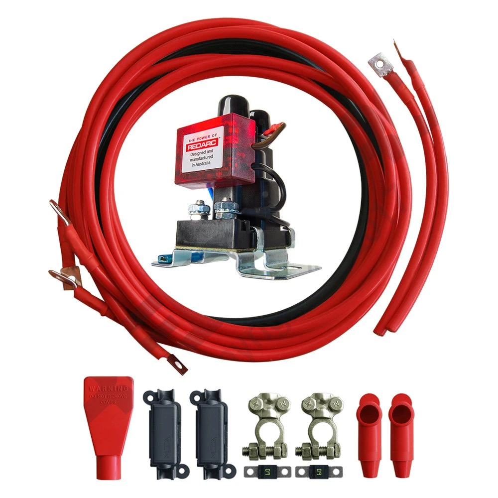 Smart Start™ 12 V 100 A Battery Isolator Kit by Redarc®. With Wiring Kit. The Smart Start® Dual Battery Isolator and Wiring Kit (part number SBI12KIT) comes with everything required to install your Smart Start® Dual Battery Isolator including the Smart Start® itself. Perfectly suited to the DIYer, the SBI12KIT requires no crimping or soldering, it’s just plug and play. The SBI12KIT features high quality MTA 60 amp fuses and fuse holders with the corresponding ring terminals already attached to the wires.