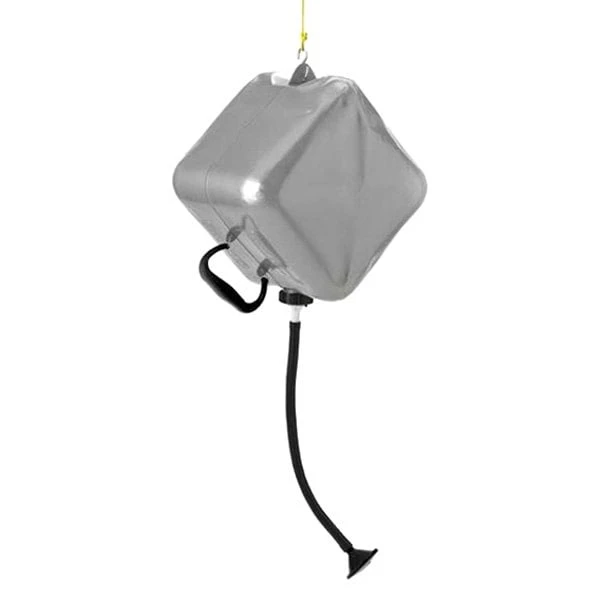 Solar Spray Shower by Reliance®. This portable shower heats water up to 100° F (37° C) in 2.5 hours and features a kink resistant hose and shower nozzle for smooth water flow. Easily transport this portable shower with its ergonomic handle. Includes an S-Hook and cord to hang your Solar Spray to create a comfortable shower station wherever you are.