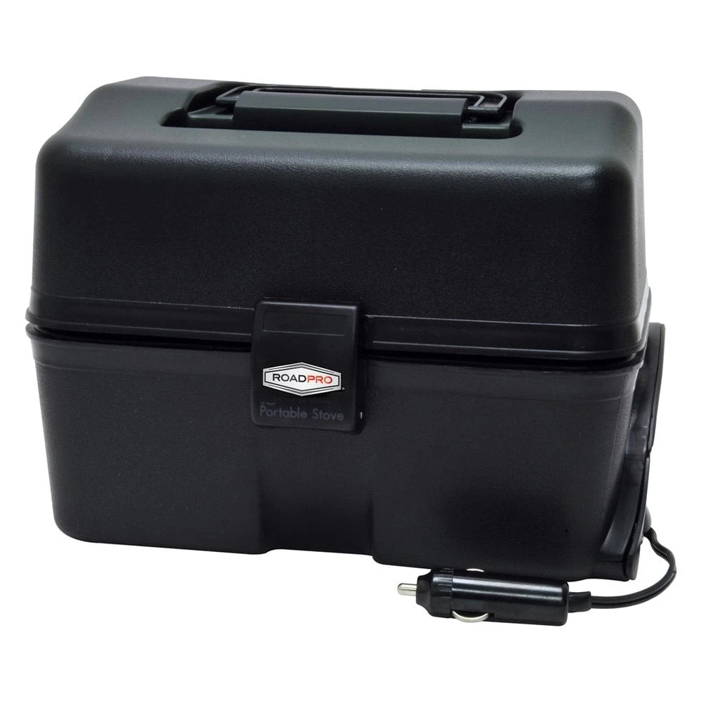 12 V Portable Stove by RoadPro®. This portable stove plugs directly into a 12-Volt power port and is perfect for cooking or warming foods up to 300°F. This product is made of high-quality materials to serve you for years to come. Designed using state-of-the-art technology and with customers in mind. It will meet your needs and deliver great quality at an affordable cost.