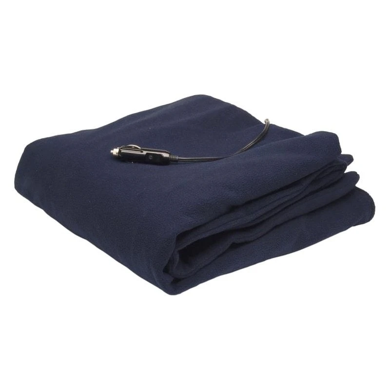 12V DC Fleece Electric Heated Blanket by RoadPro®. Cozy up with this heated fleece blanket! The 8′ cord conveniently plugs into your cigarette lighter and allows plenty of room for use. This heated fleece blanket is made with soft 100% polar fleece material making it very warm and easy to wash. It features an 8′ 12-volt power cord, that plugs directly into your cigarette lighter socket, with LED indicator on the plug. It comes with a zippered bag for easy storage and extra protection.