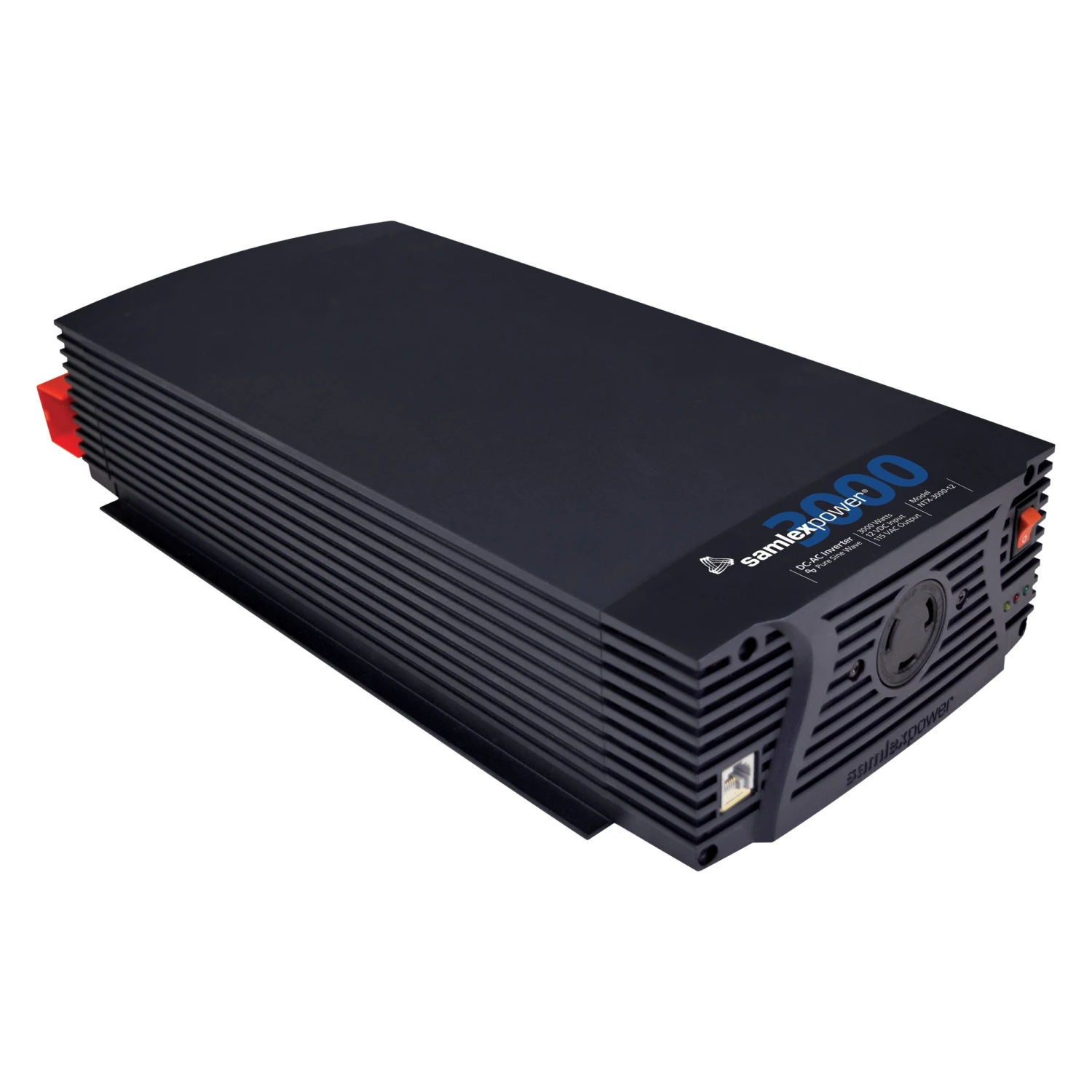 3000W 12 DC 115 AC Pure Sine Wave Power Inverter by Samlex®. The NTX-3000-12 features a 30 Amp NEMA L5-30R locking AC outlet with mating plug and built-in GFCI protection for full power utilization. The NTX Series Pure Sine Wave power inverters are FCC certified to ensure electrical interference will not be a problem when operating near sensitive equipment. Compact and lightweight, the NTX inverters have a single variable speed temperature and load-controlled fan for quiet operation.