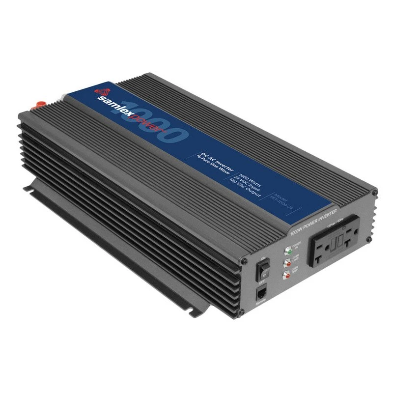 PST Series 1000W 24 DC 120 AC Pure Sine Wave Power Inverter with Remote Input by Samlex®. Get the power for your RV when miles away from the civilization with this high-end device. The ultimate in convenience and value, this is a practical solution for just about any RVer. Built to tackle just about anything your rugged adventures can throw at it, this product is made from top-notch materials to ensure reliable, hassle-free functionality for many adventures to come.