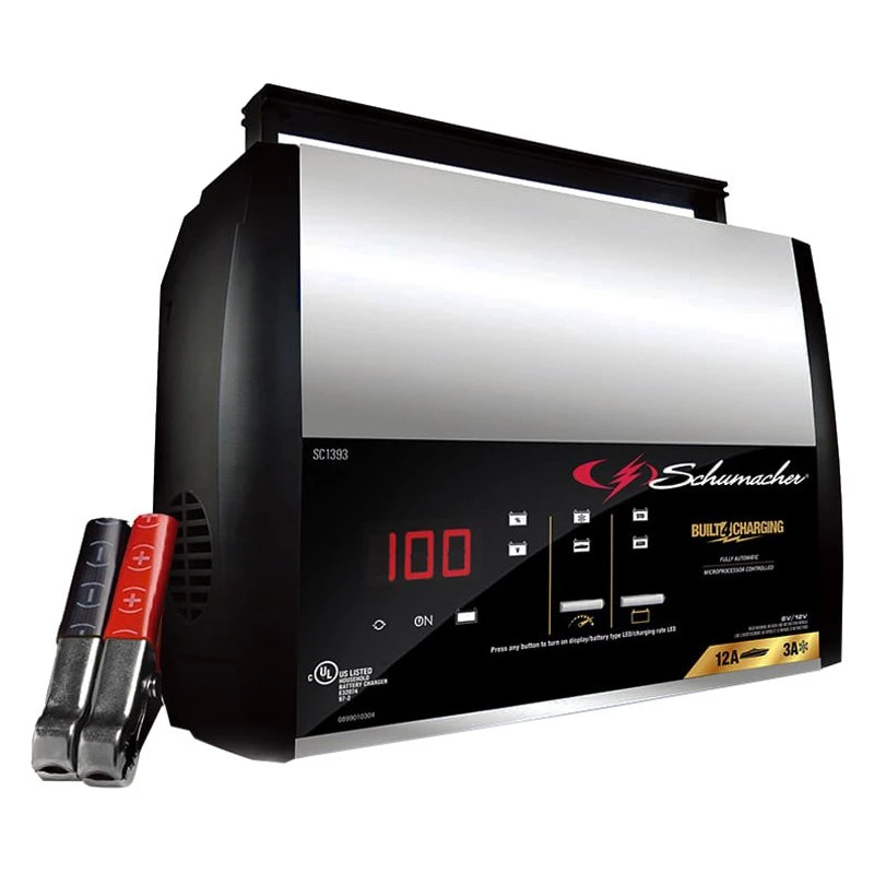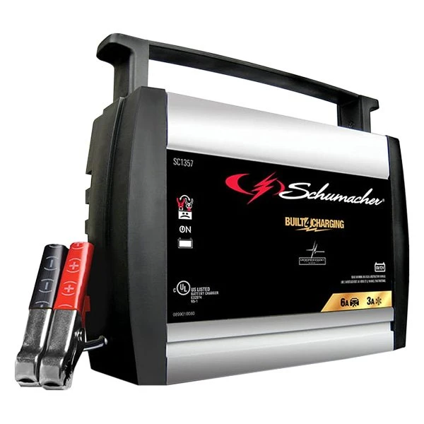 6 V/12 V Portable Fully Automatic Battery Charger by Schumacher®. Imagine a situation when your battery is dead and you are stuck somewhere on the road. A high-performance engine starter is an essential tool to have at hand in emergency situations, while an efficient battery charger will help you fix the problem of a flat battery in a few hours when there is no rush. Get these premium tools and feel confident to start your vehicle, whatever the situation is.